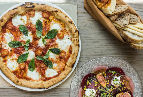 المطعم يتميز بتراس خارجي مغطى بأوراق الشجر ويقدم أطباقاً لذيذة من لحم البقر الطازج والبوراتا الكريمة و غيرها من الأطباق الإيطالية .