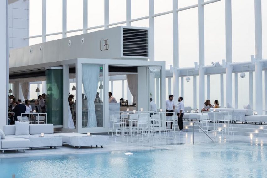 يقول برنارد خوري، العقل المدبر والمهندس وراء التصميم الجديد لLevel 26: “صمم الروفتوب الجديد لاستيعاب كل أنواع الفعاليات”. “يمكن الاستمتاع بالبار المركزي الأبيض في جميع الظروف الجوية حيث تفتح واجهاته الزجاجية للتواصل مع الصالة الخارجية، مما يمنح الضيوف الشعور بأنهم في الداخل والخارج في نفس الوقت. جميع عناصرالروفتوب، من الأرضية إلى المسبح الى قطع الأثاث، مغطاة بالرخام، مما يعكس السماء في جميع حالاته.”