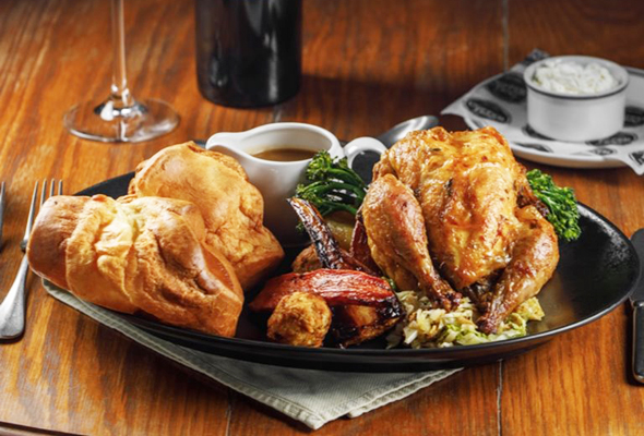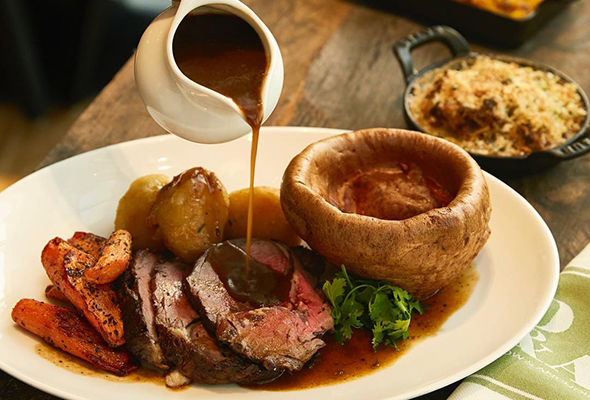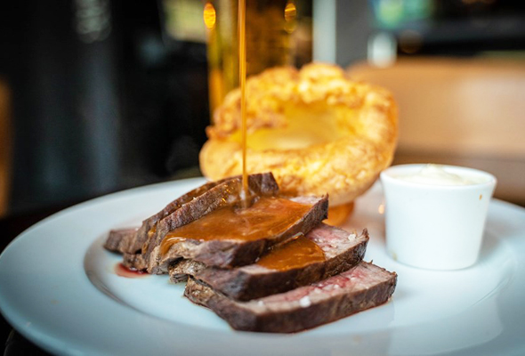 يقدم هذا المطعم البريطاني قائمة عشاء تحتوي اللحم البقري أو الدجاج أو الضأن المشوي ، والذي يتم تقديمه سبعة أيام في الأسبوع من 5 مساءً إلى 10 مساءً.