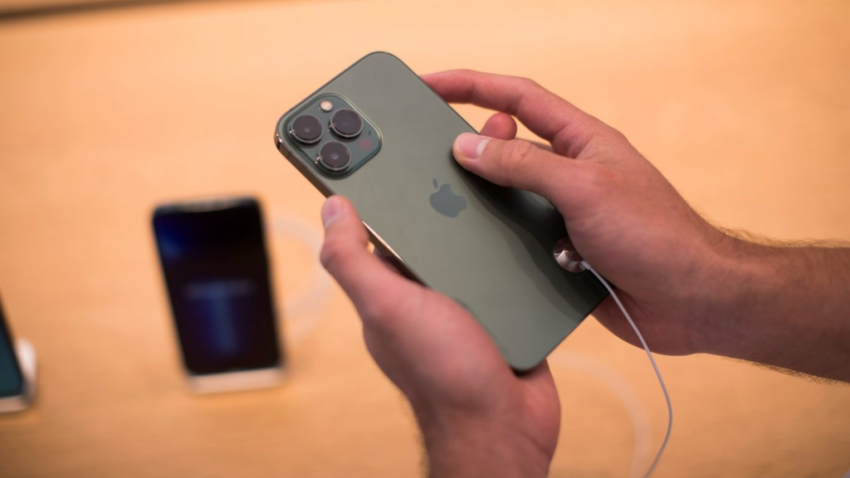FILE PHOTO: People look at the new iPhone 15 Pro as Apple's new iPhone 15 officially goes on sale across China at an Apple store in Shanghai, China September 22, 2023. REUTERS/Aly Song/File Photo