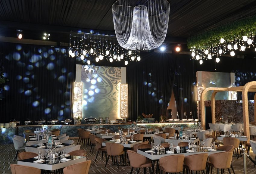 يتم استقبال الضيوف على أنغام الكمان، مع عبق القهوة العربية الطازجة ومذاق التمور الفاخرة في قاعة الثريا؛ التي تم تصميمها وتحوليها إلى واحة ساحرة تمزج بين التصاميم التقليدية وألوان الصحراء الخلابة، التي تعكس الأجواء التراثية.