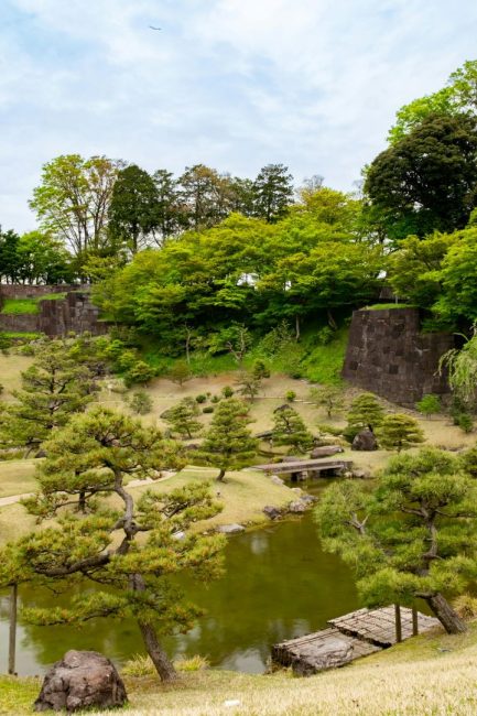 عبر جسر للمشاة، يمكنك الوصول إلى قلعة كانازاوا. يعود تاريخها إلى أواخر القرن السادس عشر وجدرانها وخنادقها ومبانيها التي أعيد بناؤها مليئة بالقصص. يروي المرشدون المتطوعون للسائحين القصص يومياً من خلال جولات سيراً على الأقدام تُقدم من مارس إلى ديسمبر.