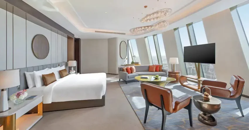 وسيضم الفندق 259 غرفة وجناحاً، بما في ذلك شقة بنتهاوس ملكية مع مسرح خاص وحوض استحمام من الرخام الياباني، بالإضافة إلى 224 وحدة سكنية تحمل علامة تجارية ومهبط للطائرات المروحية على السطح يتمتع بإطلالات بانورامية على الخليج العربي وأفق مدينة دبي.