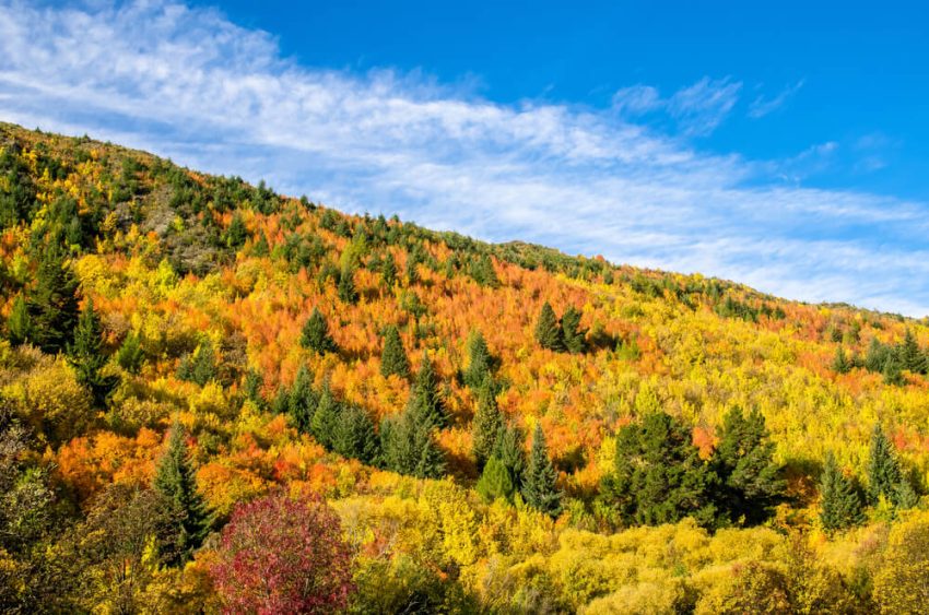 يتدفق نهر أرو المتلألئ بجوار التلال المغطاة بمزيج من ألوان الذهب والقرمزي والبرتقالي التي ترسمها أشجار الحور والجميز والبلوط الشهيرة في البلدة.