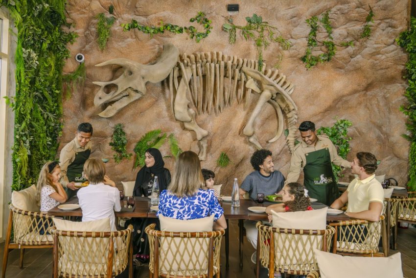 أما تجارب الطعام، فتتألق عبر كافيه رورينغ ديناصور و سبلاشينغ رابتور اللذين يقدمان أطباقاً مستوحاة من العصور القديمة بجانب المسبح، لتتحول كل وجبة إلى مغامرة نكهة فريدة.