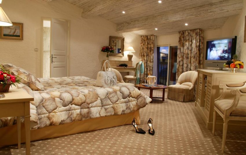 تقع الغرف حول حوض سباحة في الهواء الطلق، وهي مزينة بشكل فردي، وتتراوح بين غرف فاخرة وأجنحة ديلوكس تضم غرفة معيشة كبيرة مع طاولة خشبية جميلة، وأريكة وتراس لطيف مع إطلالة على البحر وعلى اليخوت الفاخرة الراسية في ميناء سانت تروبيه.