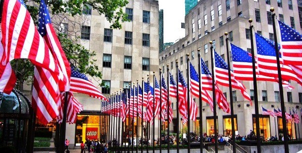 يفرط الأمريكان في تعليق علم بلدهم، فتجده أمامك في كل شارع وزاوية ويطل عليك من نوافذ البنايات .