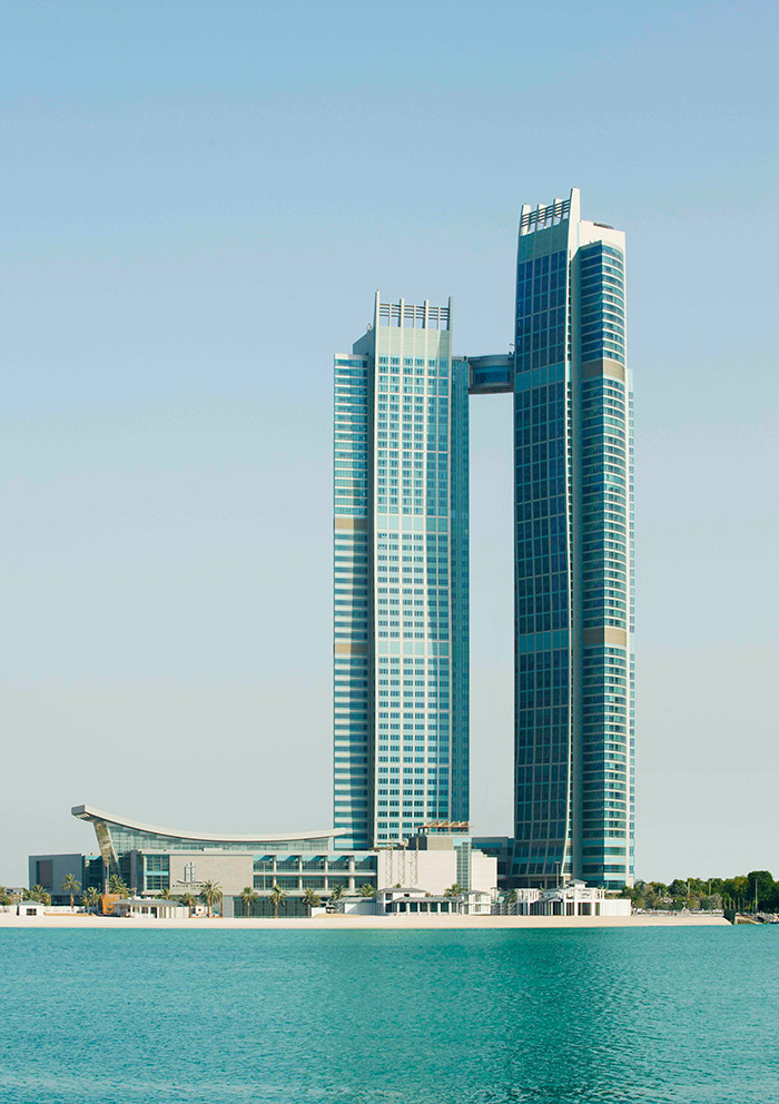 ومن أشهر معالم الفندق الفخم «جناح أبوظبي» الواقع في الجسر المعلَّق بين البُرجين، إذ يرتفع أكثر من 200 متر عن سطح الأرض وينفرد بإطلالة بانورامية باهرة 360 درجة على الخليج العربي وكورنيش المدينة ومعالمها، وهو يُعَدُّ أعلى جناح فندقي معلَّق في العالم. ويجسّد «جناح أبوظبي» الممتد على مساحة 1,085 متر مربّع الفخامة العصرية بكافة أبعادها وتجلياتها، فهو يجمع بين التصاميم العصرية ولمسة الأصالة العربية اللافتة، ويتألف الجناح من ثلاث غرف نوم، ومجلس فسيح مع سقفٍ عالٍ، ومصعد خاص، وسبا خاص، ودار سينما، علاوة على المطبخ وغرفة الطعام وقاعة التمارين الرياضية. وسينعمُ المقيم في «جناح أبوظبي» بالفخامة في كافة أرجائه، بدءاً من الجدران الجلدية والمخملية والفسيفساء الزجاجية ووصولاً إلى أوراق الذهب عيار 24 قيراط والكريستال.