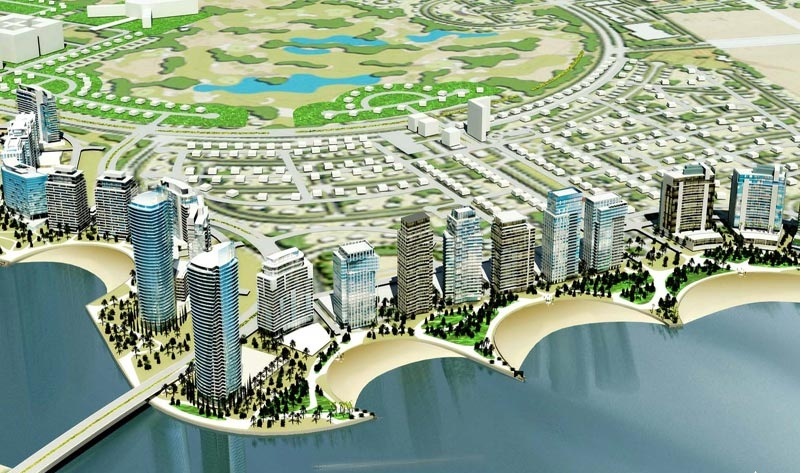 كما تضم القرية السياحية في الجانب الأرضي من المشروع مساكن ومكاتب ومطعم البرج ومارينا مع ميناء لليخوت.