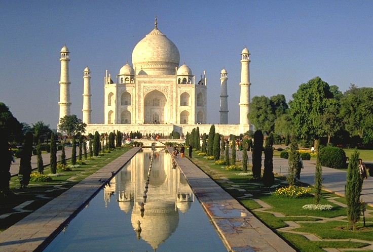 واحد من المباني الأكثر شهرة في العالم، تاج محل (أو قصر القصور) في أكرا وهو أيضا واحد من أجمل المباني في العالم. في الواقع تاج محل هو ضريح بناه الإمبراطور شاه جاهان كنصب تذكاري لزوجته الثالثة ممتاز محل، والتي توفيت أثناء ولادة طفلهما الرابع عشر!! في عام 1631 ميلادية. هذا النصب المصنوع من المرمر الأبيض والشاهد على الحب العميق يجذب الأزواج والعشاق عاما بعد عام لزيارته. قبة الضريح المصنوعة من الرخام البيضاء هي الأكثر شهرة، توفر جوا عميقا من الرومانسية، ولشدة جمال هذا البناء، وصفه طاغور شاعر الهند بأنه ’دمعة على وجه الأبدية‘.