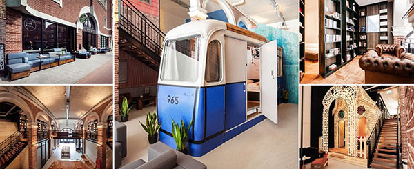 غرف تقبع خلف المكتبات، وسرير داخل عربة ترام قديمة، وعش غراب يقع أعلى سلم هكذا تظهر الغرف داخل فندق أمستردام، الفندق الأغرب في العالم والمسمى “فندق ليس بفندق”.