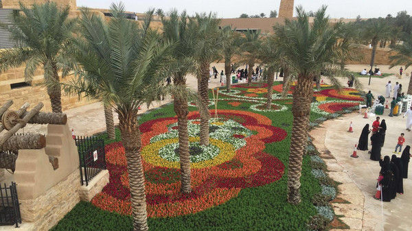 ويشمل المهرجان سجادة عملاقة للزهور هي عبارة عن موقع مجهز يحتوي أنواعا مختلفة من الزهور ومغطيات التربة بعدد يتجاوز مليونا و400 ألف زهرة مقسمة إلى لوحة الزهور، وهي عبارة عن تشكيلة تضم أكثر من 10 أنواع من الزهور بألوانها المختلفة وأشكالها المبهجة، تم إنتاج أغلبها في مشاتل الأمانة لتشكل سجادة زهور متناسقة الألوان، وبانوراما عاصفة الحزم، وهي لوحة من الزهور تحكي ترابط جنودنا البواسل مع المواطنين لحماية وطننا المعطاء في ظل حكومتنا الرشيدة.