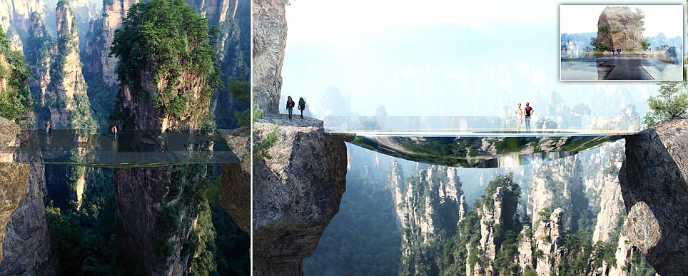 تم تصميم الهيكل الشفاف لينسجم مع المناظر الطبيعية في جبال تشانغجياجيه، وسيكون معلقا بين قمتي جبلين، وسيكلف بناؤه ما يقارب 5 ملايين دولار، وسيتم إنشاؤه من قبل مارتن Duplantier للهندسة (MDA) وDaqian Landscape للهندسة، الذي فاز في مسابقة التصميم.