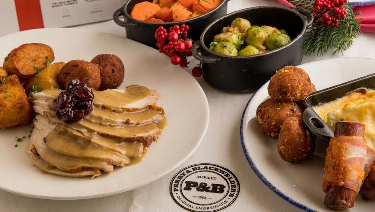 يقدم بيري آند بلاكويلدر الديك الرومي المدخن محضرًا على الطريقة الأمريكية مع المرقة بحشوة خبز الذرة. ويقدم المطعم داخل كل صندوق أربع خيارات جانبية ما بين البطاطس المشوية أو المهروسة، وكرنب بروكسل والملفوف المسلوق والذرة المقلية أو الجزر.